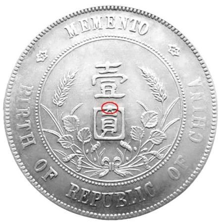 1911年5月,小头正式由南京造币厂开铸,版式为“下五角星”(图1),因该版英文无开国纪念之意,后改版为“上五角星”(图2)。在此需要指出的是国内出版的众多钱币书刊、图谱中,众口一词、相互转载标注“上五角星”版为民国17年由天津造币厂铸造,该注释纯属误解,其原由有二:1.民初中国政权南北对峙,南方有孙中山领导的临时政府,北方有袁世凯掌管的北洋政权。以此为据,小头的开铸只能在南方所属的造币厂进行,而北方的天津造币厂是不可能接受南方政府的指令开铸小头。2.据1933年商务印书馆出版耿爱德著、蔡受百译《中国货币论》载:“(一)一圆币,直径39.3毫米,正面铸孙中山半身侧面像,面向左,上端铸汉字曰中华民国,下端曰开国纪念币。背面镌刻以嘉禾,中书壹圆二字,四缘镌英文曰“MEMENTO”(纪念)、“BIRTH OF REPUBLIC OF CHINA”(中华民国开国)字样。(二)一圆币,与前同,唯英文改铸“THE REPUBLIC OF CHINA”(中华民国)、“ONE DOLLAR”(壹圆)字样。二者皆南京造币厂民国元年时铸造。”因这两版银币铸期短,铸量少,加之流存稀少,现今尤显珍贵。