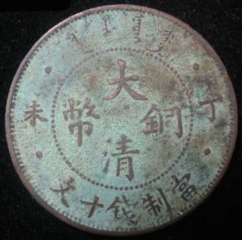 光绪三十一年(1905年),清政府铸“大清铜币”。这类钱币分4种:1、当二十重四钱(其中背面有珠圈者目前市价为60元/枚,“20”后有点约为25元/枚,中央有星点约为10元/枚,普通的仅值0.5—1元/枚)。2、当十重二钱(中央有星点约为15元/枚,普通的仅值1—7元/枚)。3、当五重一钱(约便50元/枚)。4、当二重四分(约合60多元/枚)。这类铜币成色为含紫铜95、白铅5,在当时铸造量很大,曾在民间广为流通和使用。